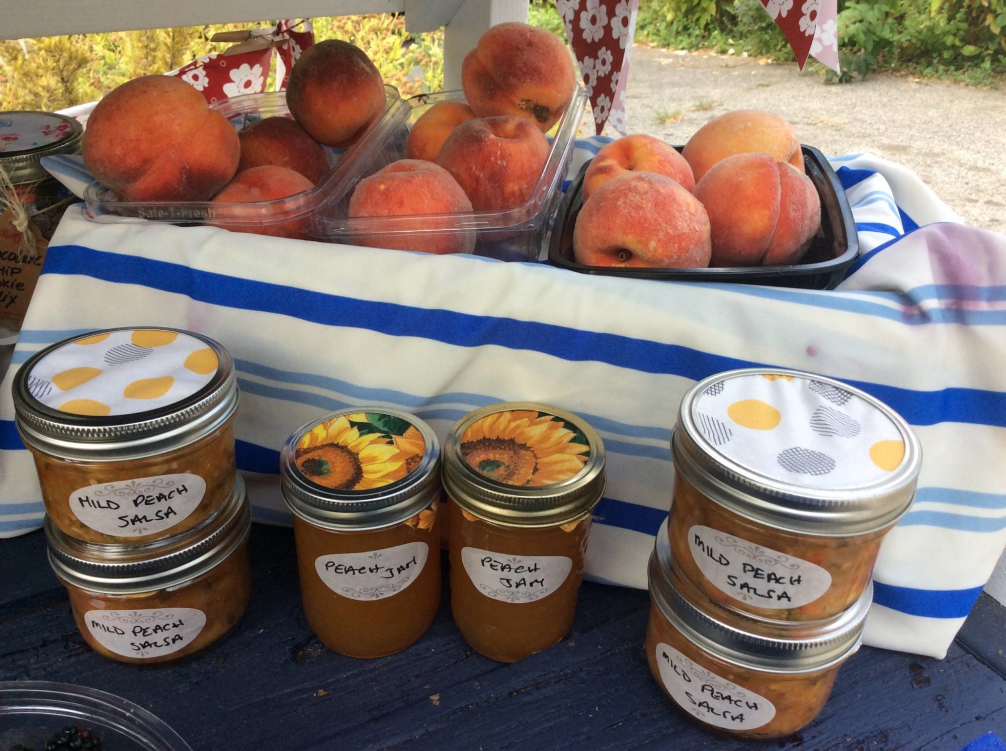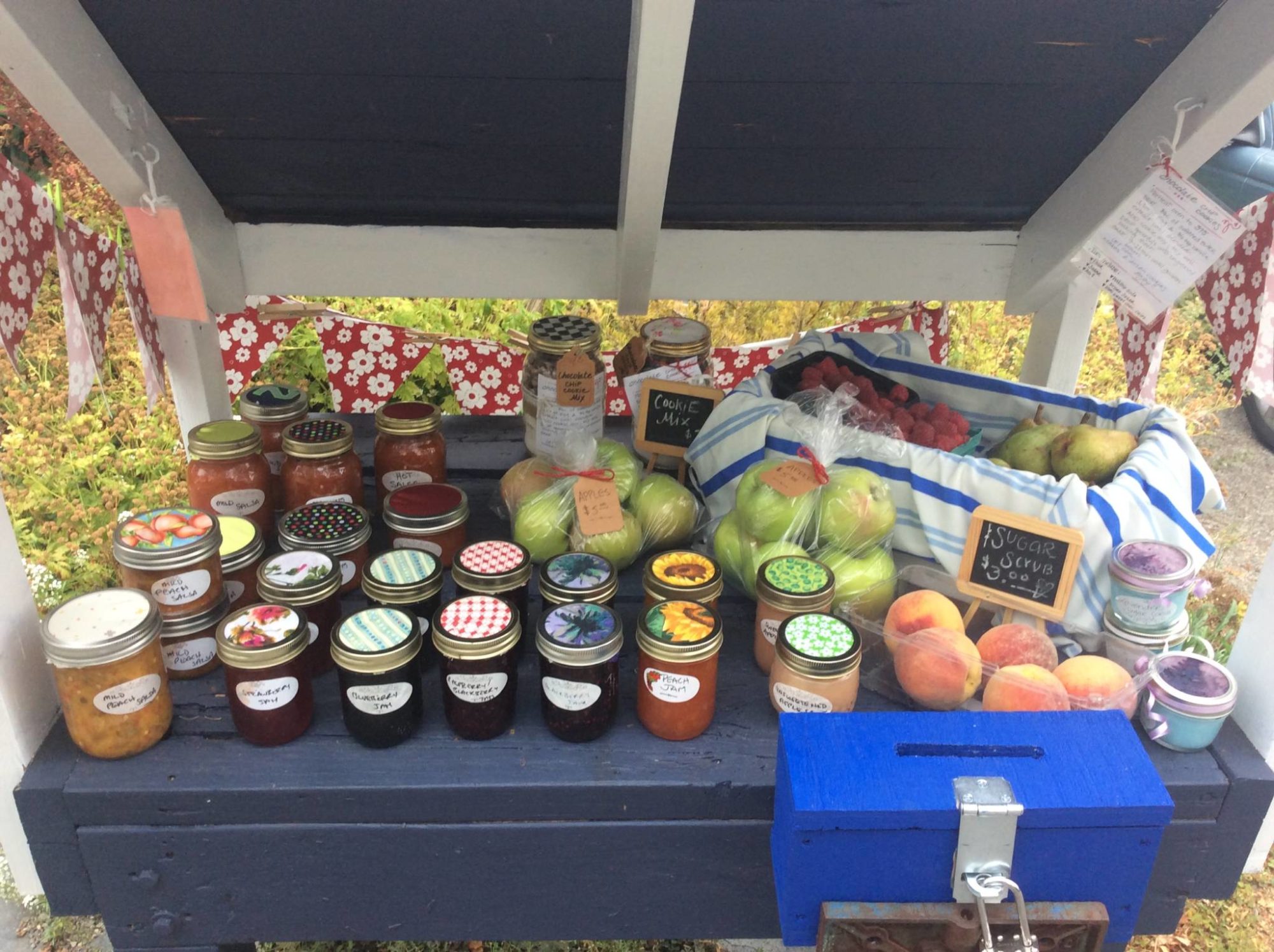 Seasonal fruit, apples, raspberries, blackberries, peaches, plums, pears, strawberries, jam, salsa, chutney, antipasto, jelly