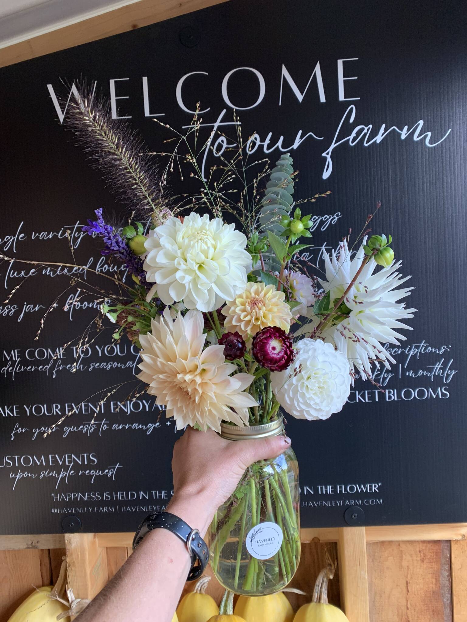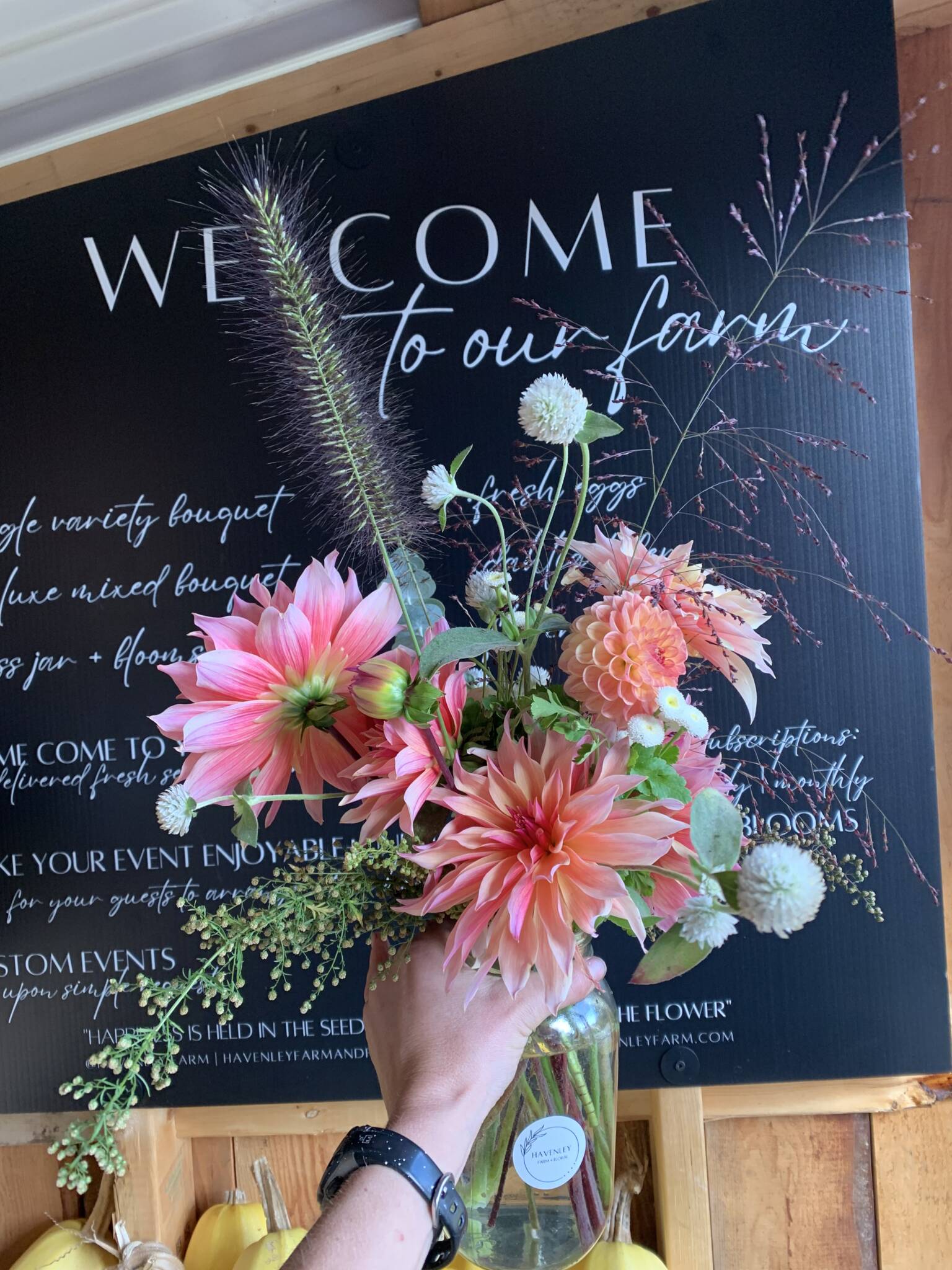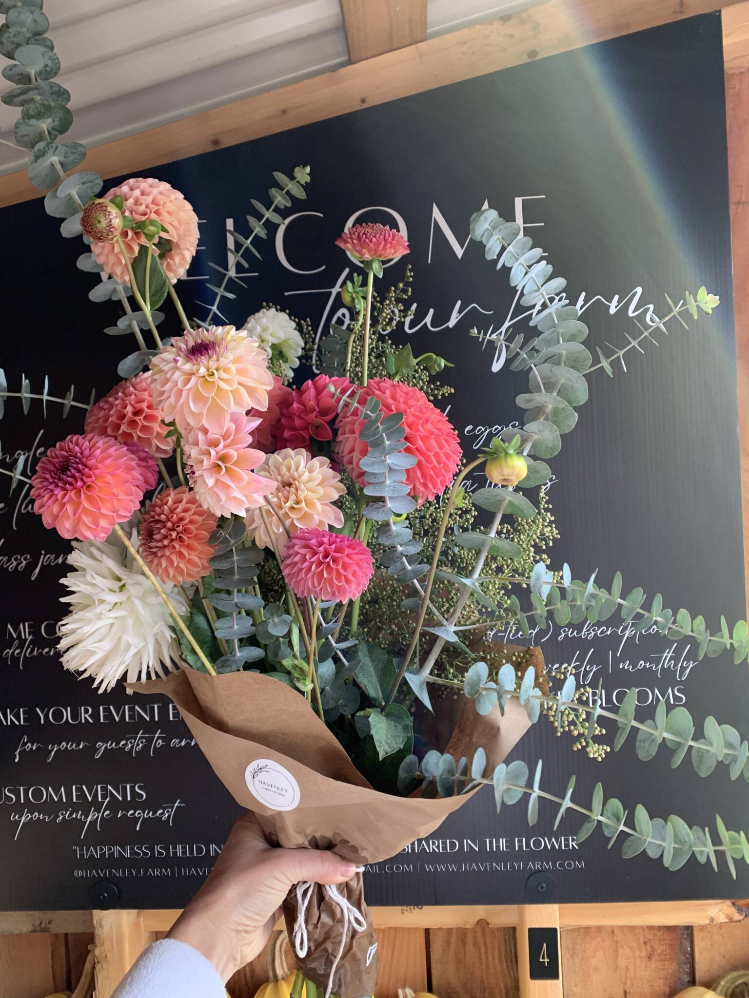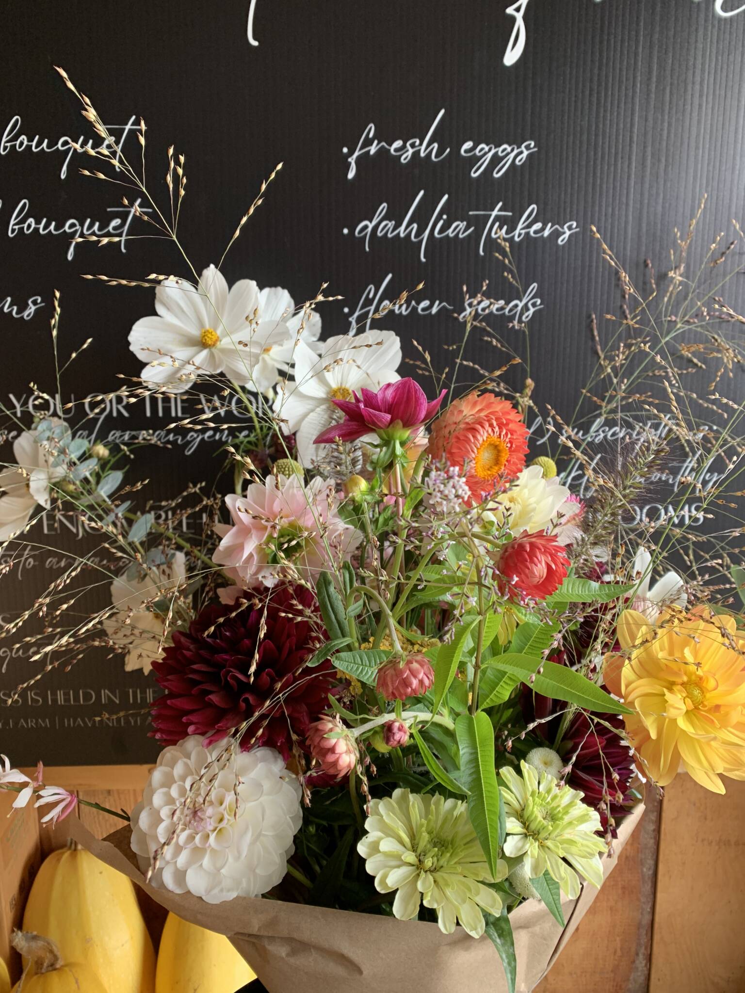Lush ready made bouquets (various sizing), flower subscriptions, bulk blooms for DIY events, dahlia tubers, flower seeds.
