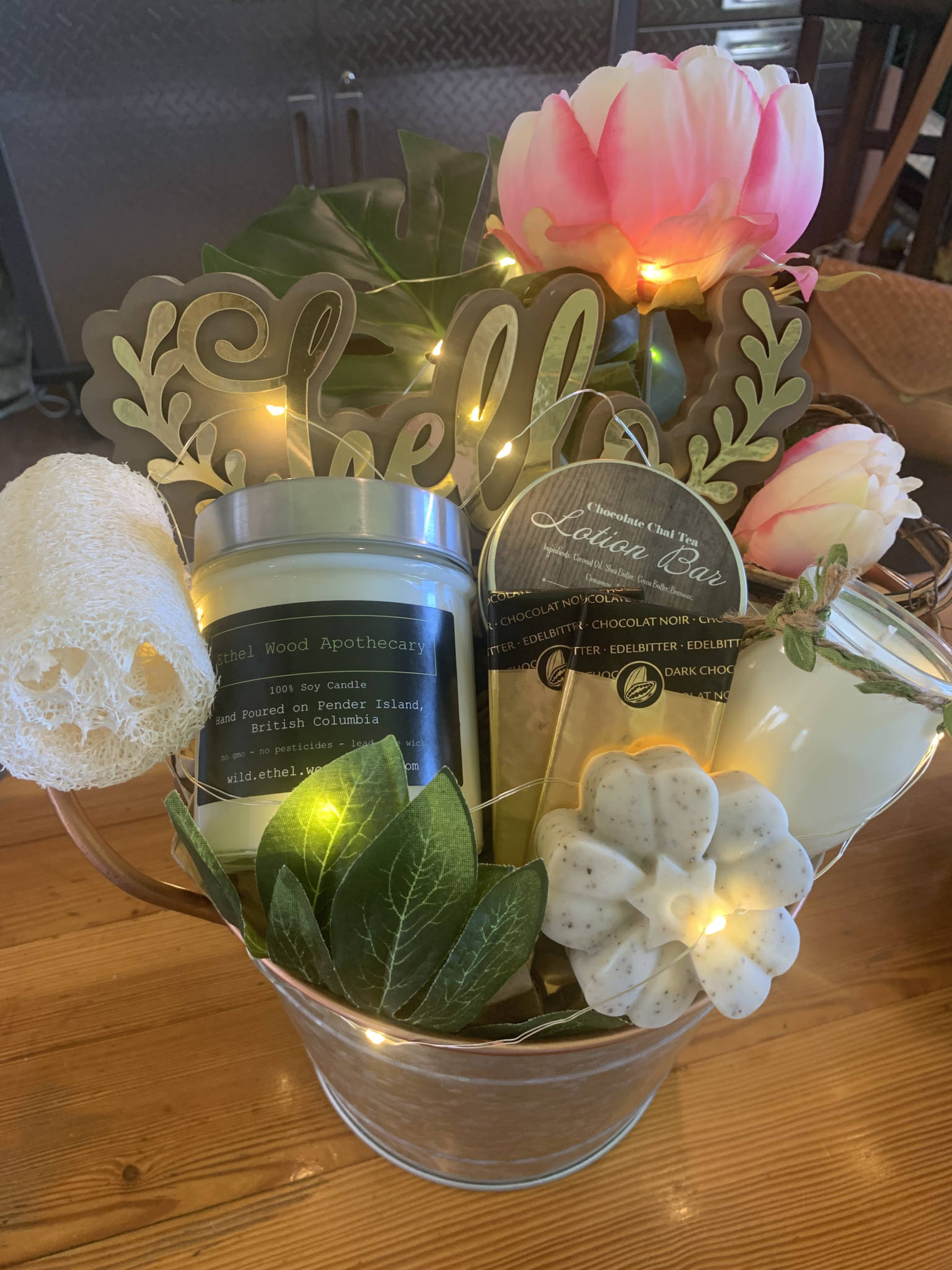 Eggs, variety of produce depending on the season, soap, candles, toilet spray, beeswax food wraps, paw wax, wreaths, etc