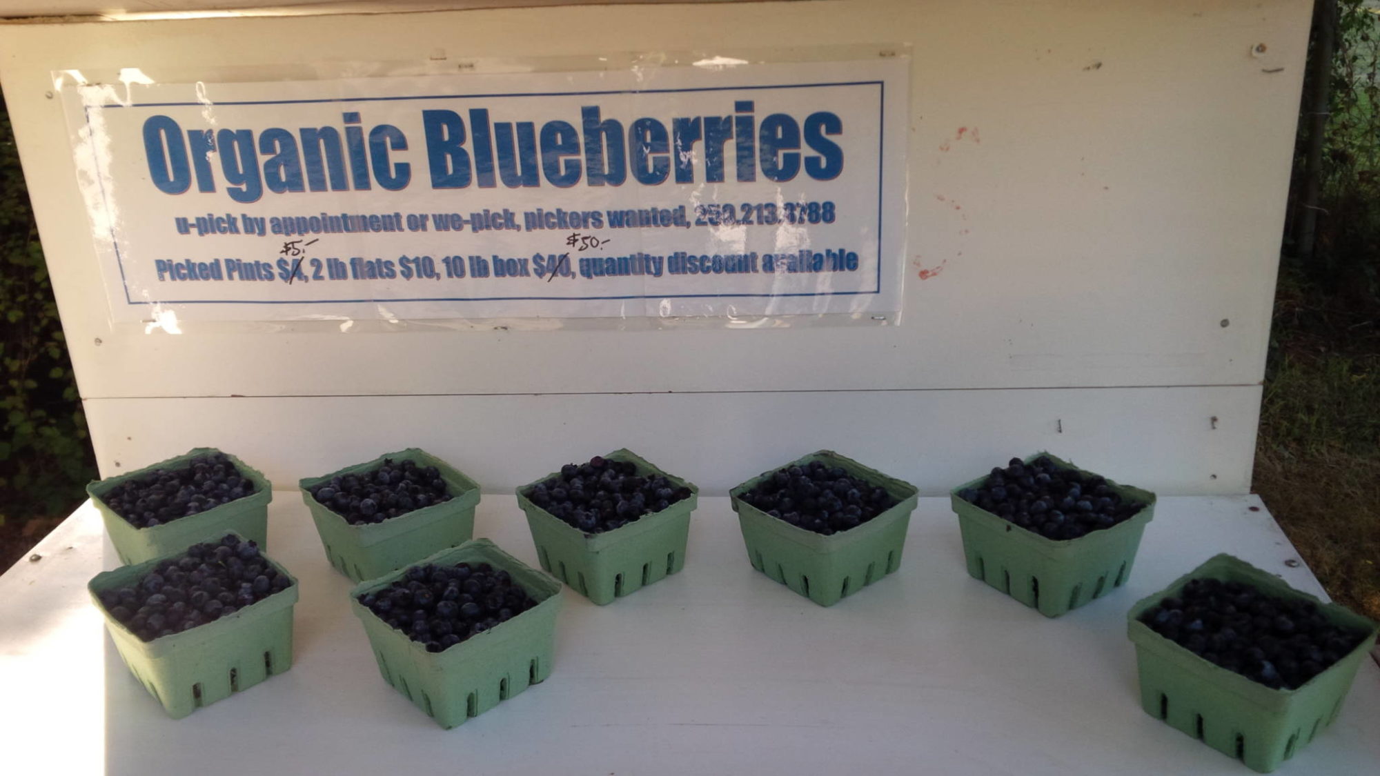 Delicious Organic Blueberries. Call ahead to confirm availability. uPick or We Pick. Fresh berries available mid Jul to mid Sep