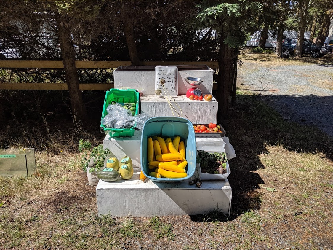 Variety of fruits, vegetables, jams and flowers throughout the summer and early fall.