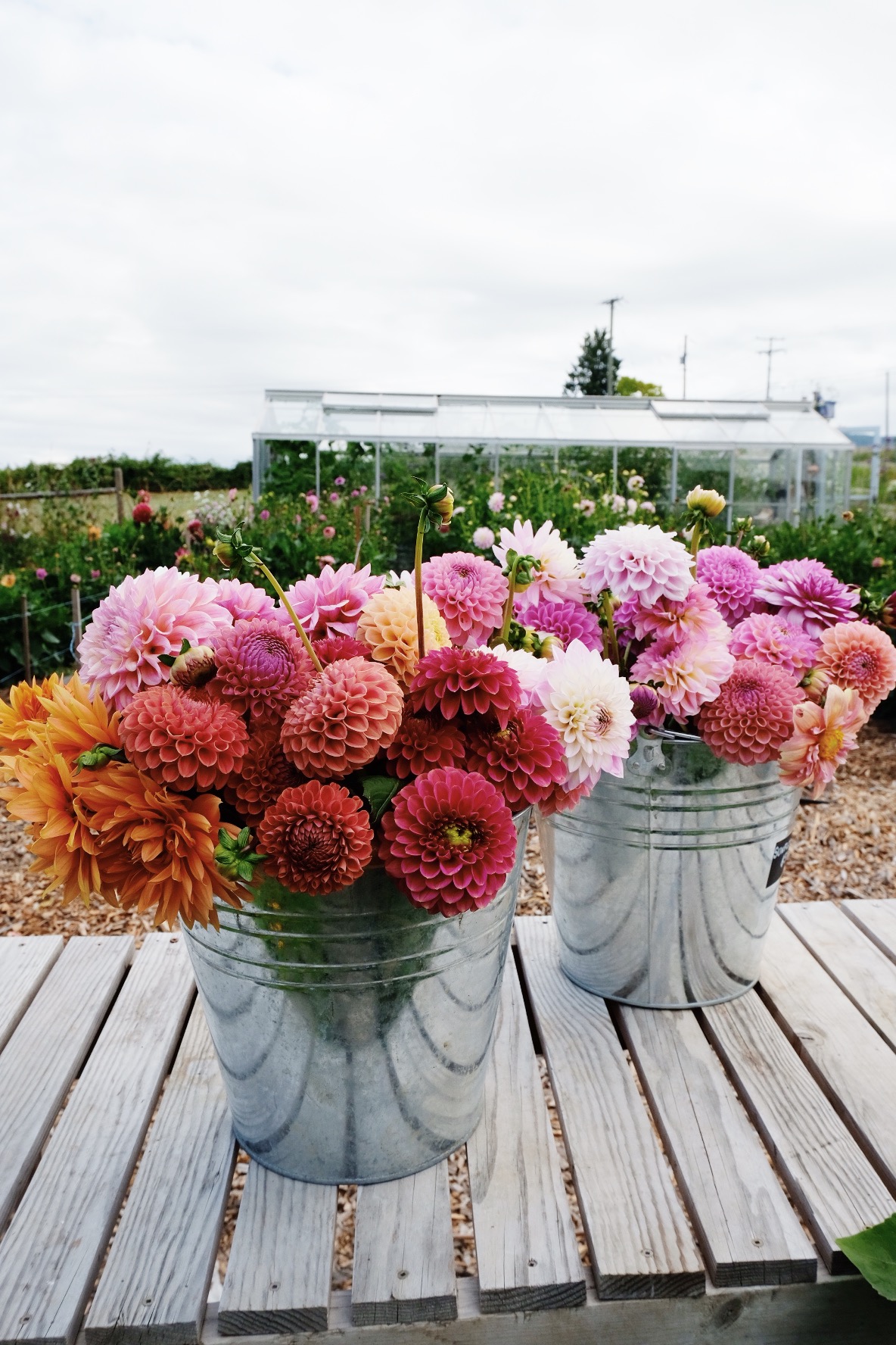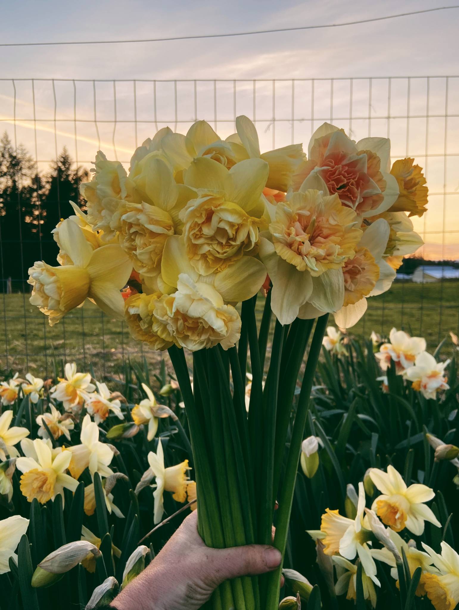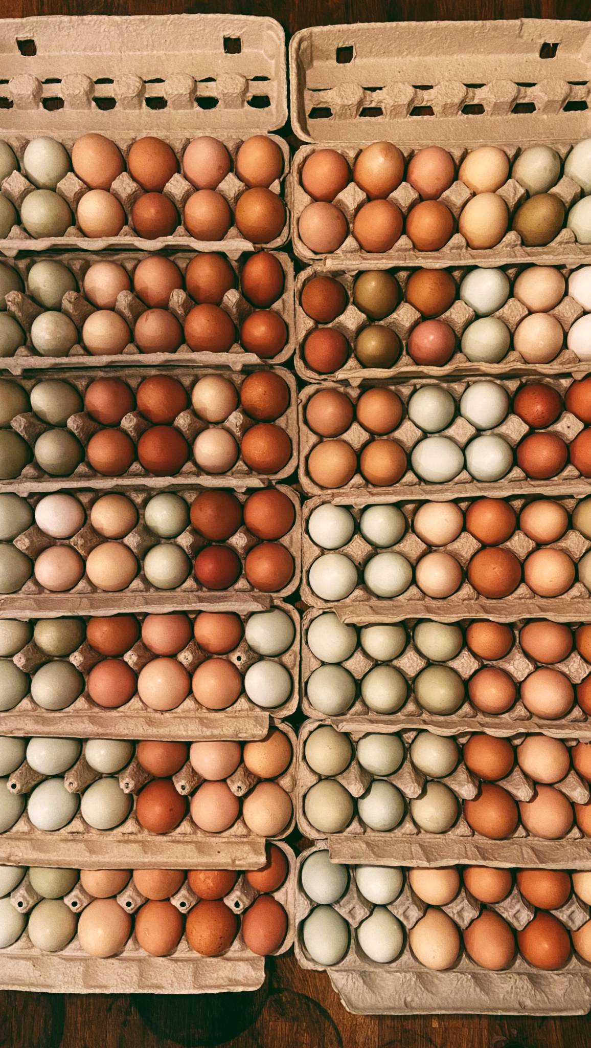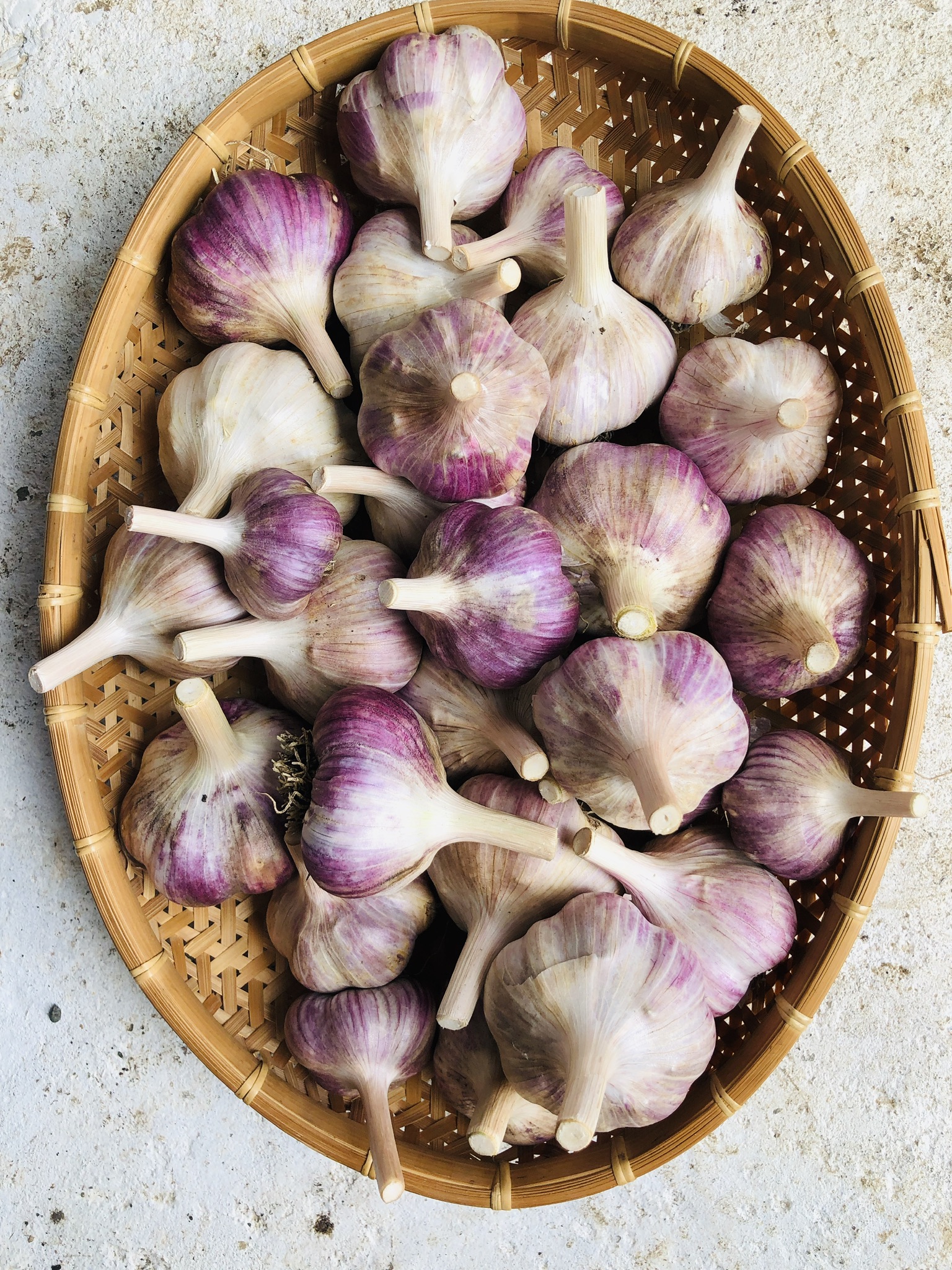 Free range chicken and duck eggs, strawberries, garlic, seasonal bouquets, plant starts and other veggies.