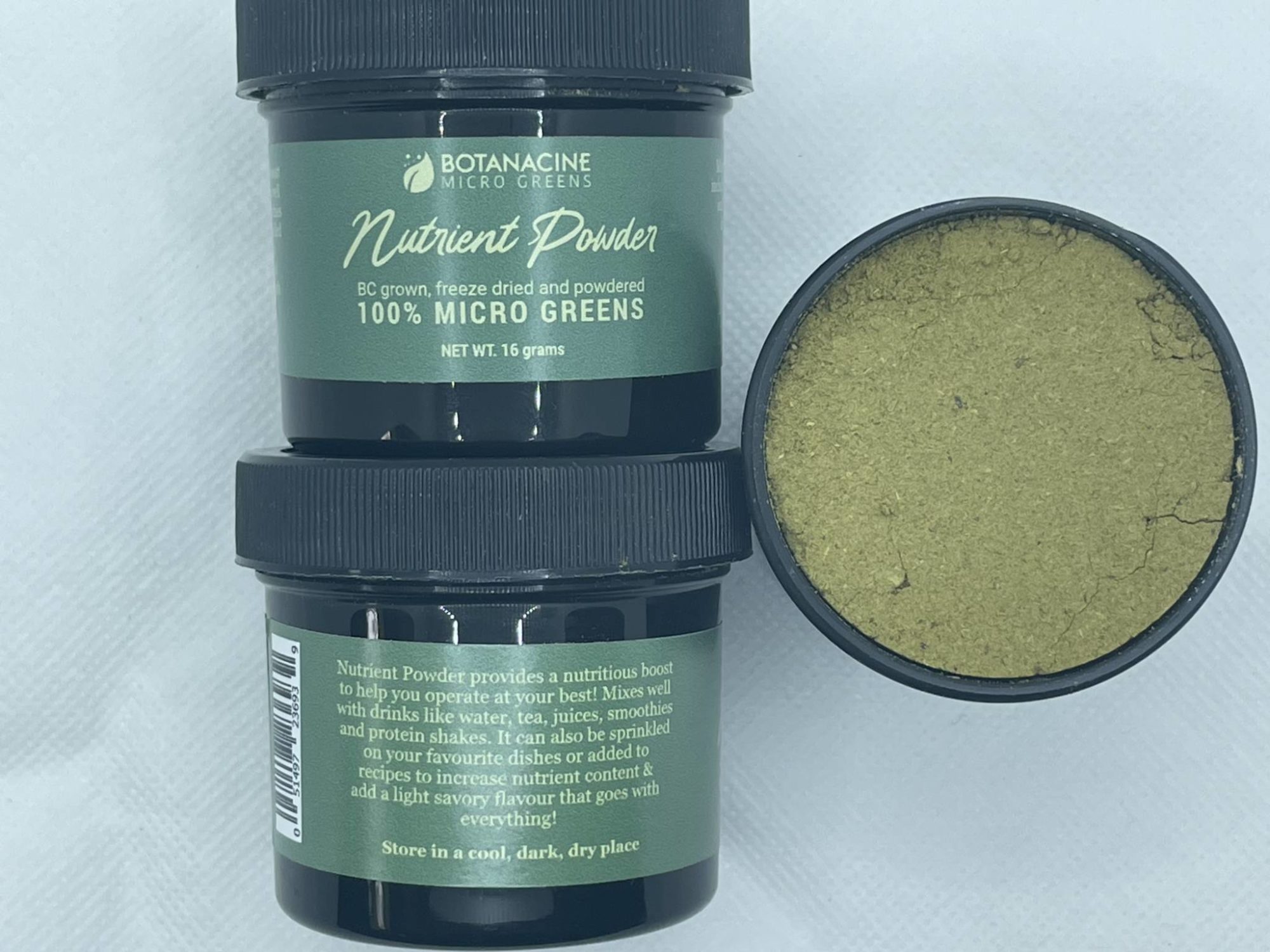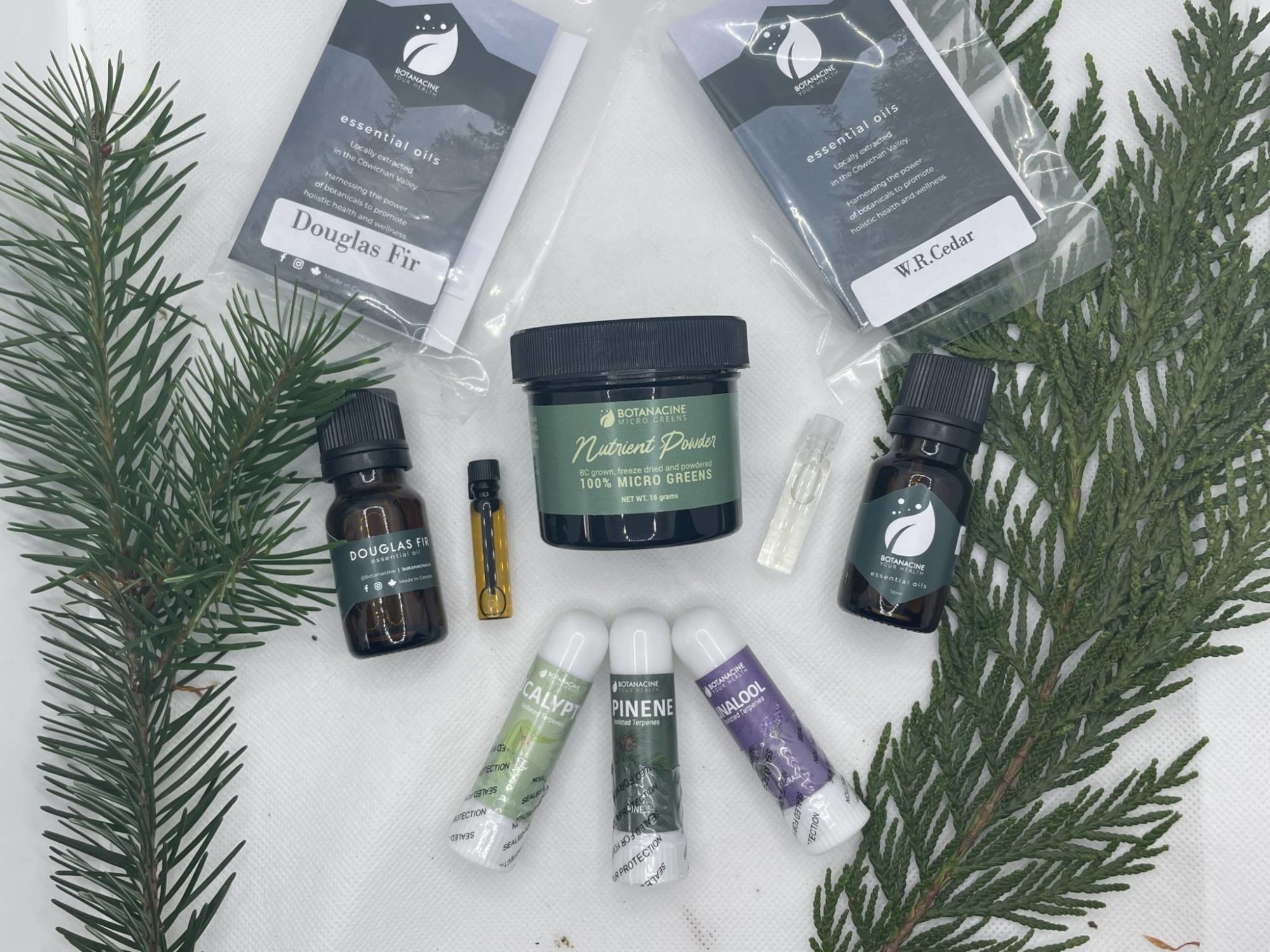 Micro greens , farm produce , locally harvested and steamed distilled Essential oils .Freeze dried micromilled microgreen powder