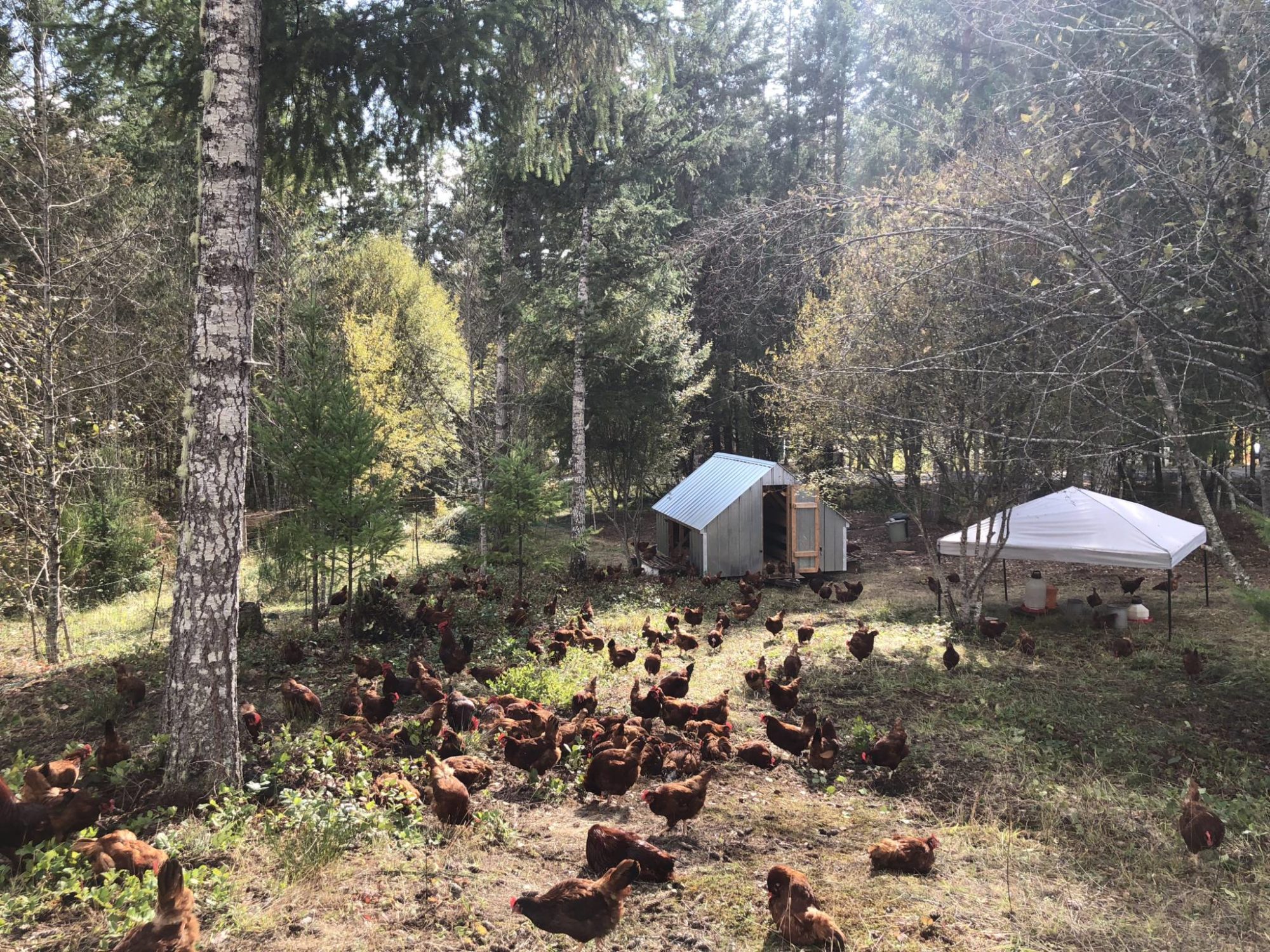 Simon Says Farm is a New egg-farm located near Duncan. The hens are living Free-Range on the Pasture or in the forest.