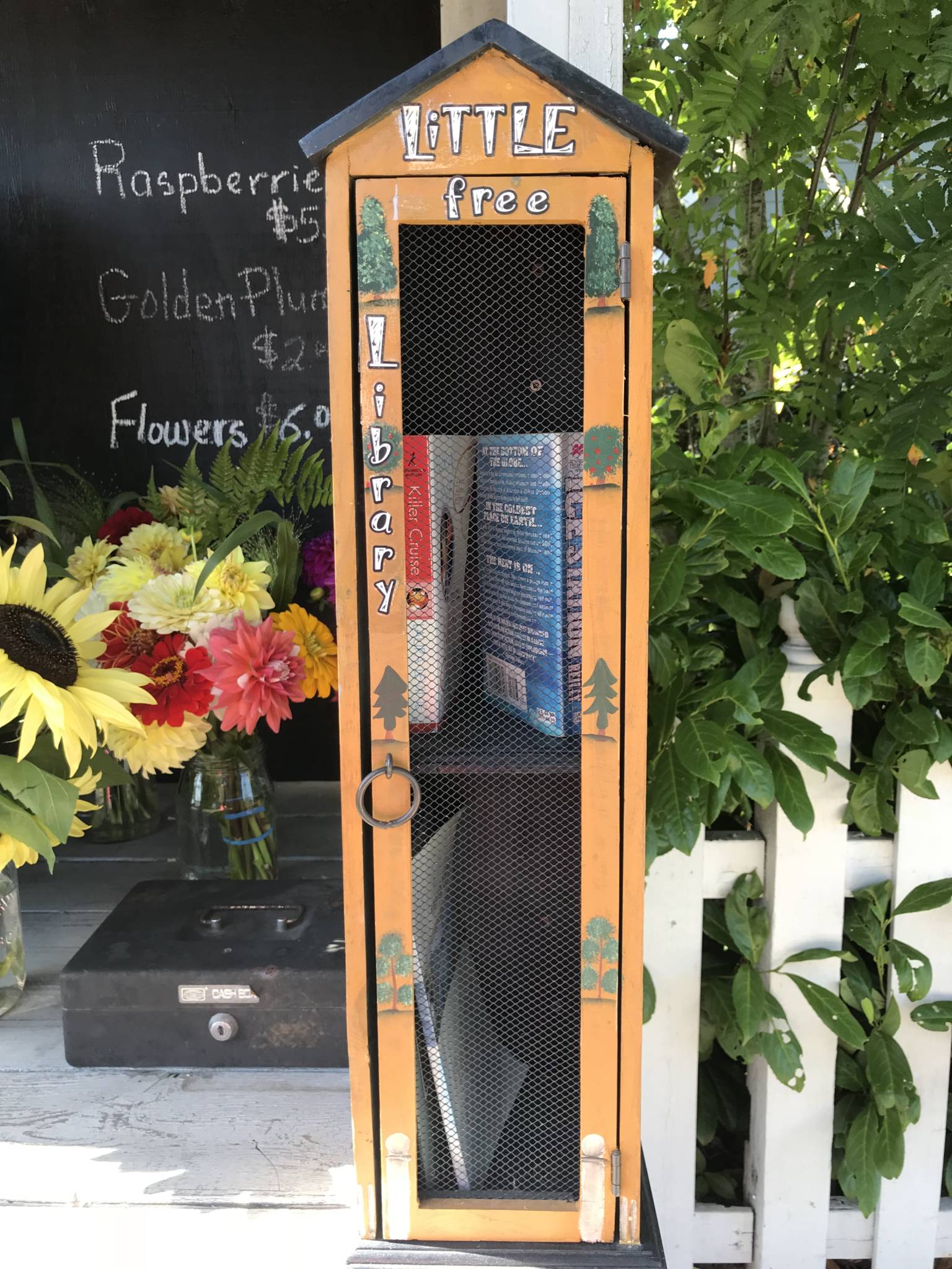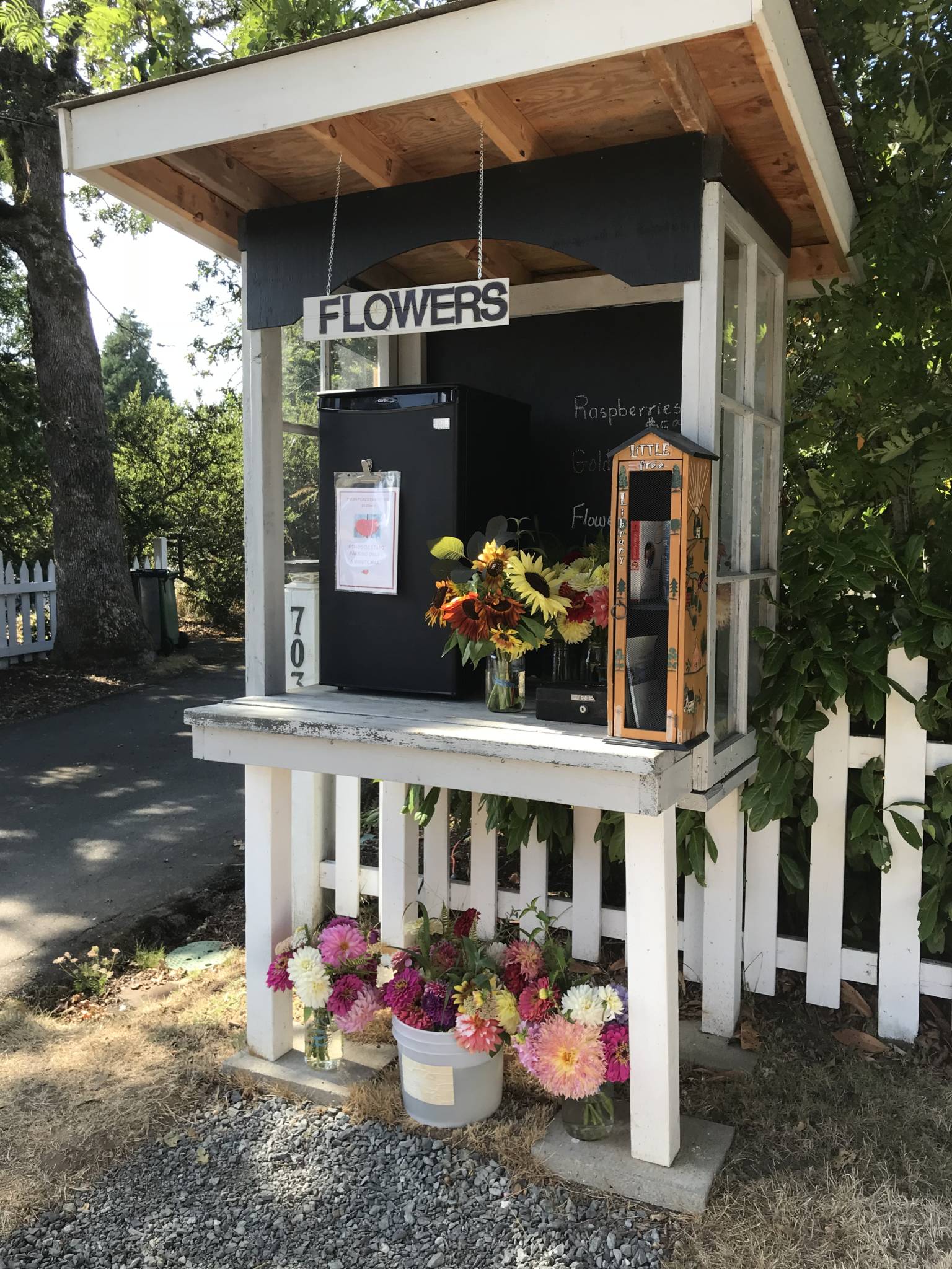 Raspberries in season (early July through late September) Beautiful Bouquets (in season) along with our Little Free Library